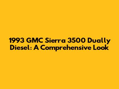 1993 GMC Sierra 3500 Dually Diesel: A Deep Dive