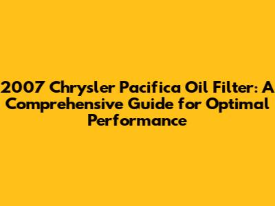 2007 Chrysler Pacifica Oil Filter: Your Complete Guide