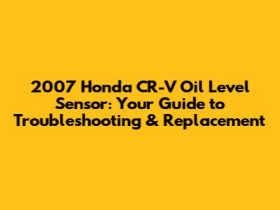 2007 Honda CR-V Oil Level Sensor: Troubleshooting & Replacement