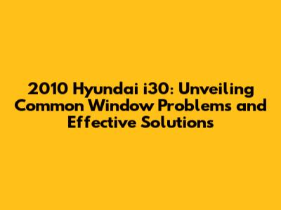 2010 Hyundai I30: Common Window Issues & Solutions