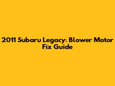 2011 Subaru Legacy: Blower Motor Fix Guide