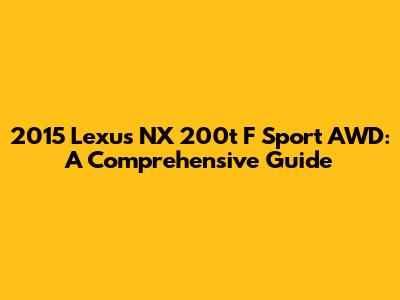2015 Lexus NX 200t F Sport AWD: A Comprehensive Guide