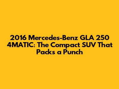 Hey guys! Let's dive into the 2016 Mercedes-Benz GLA 250 4MATIC, a compact SUV that’s perfect for zipping around town or embarking on weekend adventures. This vehicle isn't just about the Mercedes-Benz badge; it’s a well-rounded package offering a blend of luxury, performance, and practicality. Whether you're a city dweller or someone who enjoys exploring the open road, the GLA 250 4MATIC has something to offer.