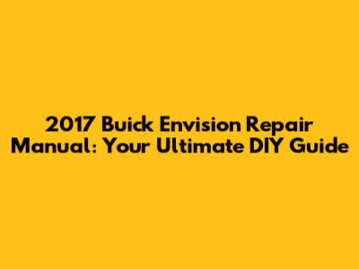Hey guys! So, you're here because you're looking for a 2017 Buick Envision repair manual, huh? Awesome! Whether you're a seasoned mechanic or just a regular Joe who likes to tinker, having the right repair manual can be a total game-changer. It's like having a super-smart friend who knows everything about your car. This guide will walk you through why you need a repair manual, where to find the best ones, and how to use them to keep your 2017 Buick Envision running smoothly. We'll cover everything from simple maintenance to more complex repairs, so you can confidently tackle any issue that comes your way. Get ready to dive in and become the master of your own Envision!