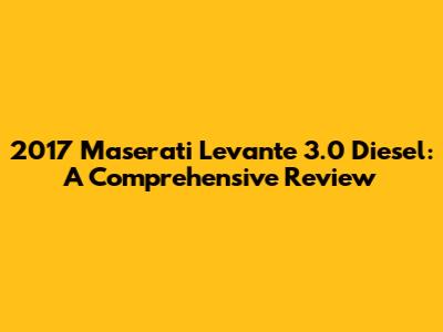 Hey guys! Let's dive into the world of luxury SUVs, specifically the 2017 Maserati Levante 3.0 Diesel. This beauty combines Italian craftsmanship with the practicality of an SUV, making it a compelling choice for those who want both style and substance. We're going to break down everything you need to know, from its performance and design to its interior and overall driving experience. So, buckle up and let's get started!