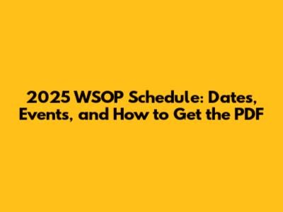 Why You Need the 2025 WSOP Schedule PDF