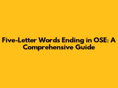When we talk about five-letter words ending in OSE, we're essentially looking at a subset of the English lexicon that adheres to a particular pattern. This pattern—consisting of three leading letters followed by the suffix "OSE"—can reveal a lot about the word’s origin, usage, and meaning. Many of these words have roots in Latin or Greek, often associated with scientific or technical terminology. For example, words like "chose" or "close" are commonly used in everyday language, while others, like "arose," might appear more frequently in literature or formal writing. By understanding this pattern, you can not only recognize these words but also infer their meanings from context, which is a valuable skill for anyone looking to expand their linguistic abilities. Furthermore, becoming familiar with these words can be a great asset in word games like Scrabble or crossword puzzles, where recognizing patterns and unusual words can give you a competitive edge. So, let's delve deeper into the specific words that fit this criterion and see how they enrich our language.