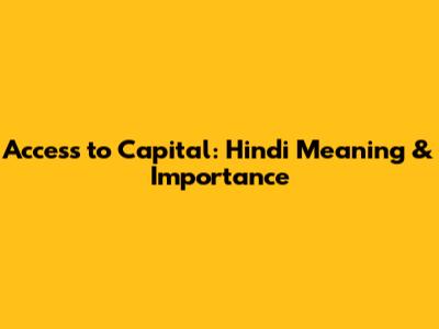 Access To Capital: Hindi Meaning & Importance