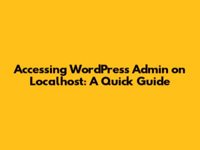 Accessing WordPress Admin On Localhost: A Quick Guide