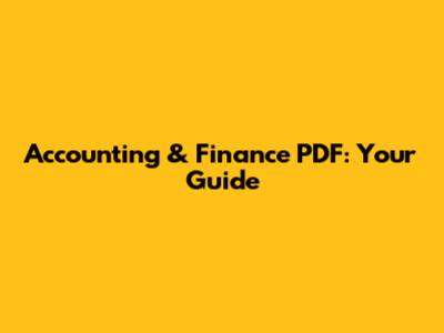 Accounting & Finance PDF: Your Guide