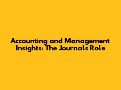 Accounting & Management Insights: The Journal's Role