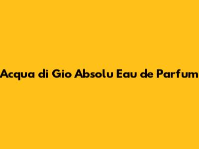 Acqua Di Gio Absolu: A Timeless Fragrance