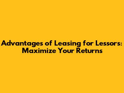 Advantages Of Leasing For Lessors: Maximize Your Returns
