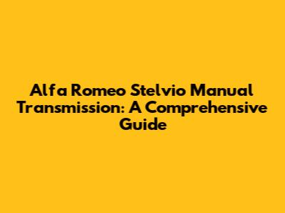 Alfa Romeo Stelvio Manual Transmission: A Comprehensive Guide