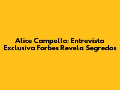 Alice Campello: Entrevista Exclusiva Forbes Revela Segredos