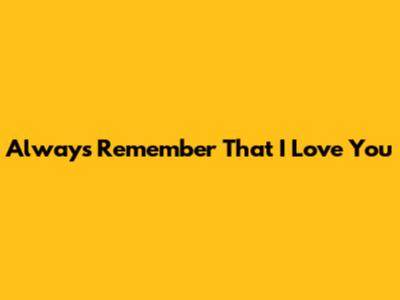 Always Remember That I Love You: A Guide To Lasting Love