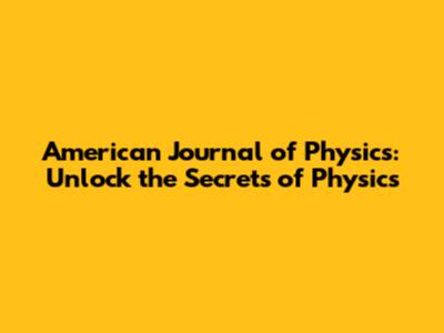 American Journal Of Physics: Unlock The Secrets Of Physics