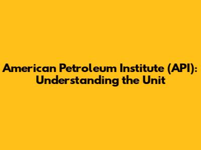 American Petroleum Institute (API): Understanding The Unit