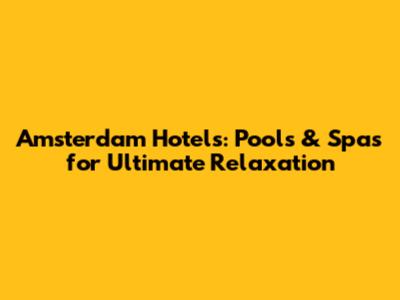 Amsterdam Hotels: Pools & Spas For Ultimate Relaxation