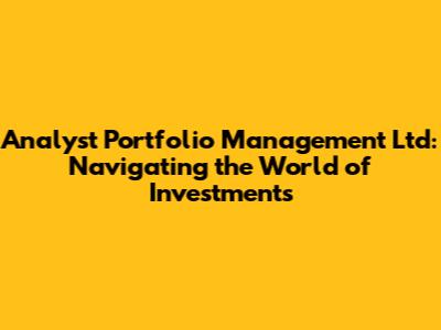 Hey guys! Ever wondered how the pros handle your investments? Let's dive into the world of Analyst Portfolio Management Ltd and break down what they do, why it matters, and how you can benefit. We'll cover everything from their core functions to the nitty-gritty details of how they make those crucial investment decisions. Whether you're a seasoned investor or just starting, understanding analyst portfolio management is key to making informed choices and potentially boosting your financial future.