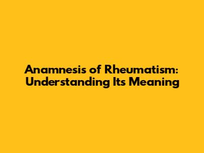Anamnesis Of Rheumatism: Understanding Its Meaning