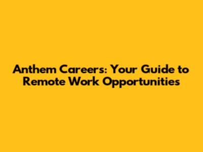 Anthem Careers: Remote Work Opportunities