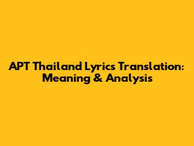 APT Thailand Lyrics Translation: Meaning & Analysis