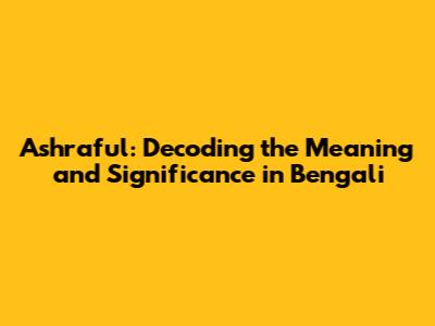 Ashraful in Bengali Culture: A Closer Look