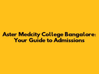 Aster Medcity College Bangalore: Your Guide To Admissions