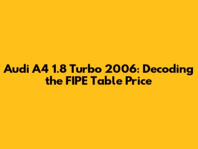Hey guys! Ever wondered about the real market value of that stylish Audi A4 1.8 Turbo from 2006 you've been eyeing? Or maybe you're trying to figure out the right price to sell yours? Understanding the FIPE table is key! This article dives deep into the FIPE table value of the Audi A4 1.8 Turbo 2006, giving you all the insights you need. We'll break down what the FIPE table is, how it's calculated, and what factors can influence the actual selling price of this iconic sedan. So, buckle up and let's get started!
