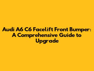 Audi A6 C6 Facelift Front Bumper: Upgrade Guide