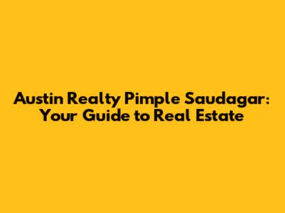 Austin Realty: Your Guide To Pimple Saudagar Real Estate