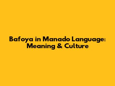 Bafoya In Manado Language: Meaning & Culture