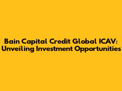 Hey everyone! Today, we're diving deep into the world of finance to explore Bain Capital Credit Global ICAV. Don't worry if the name sounds a bit complex; we'll break it down into easy-to-understand terms. So, let's get started and see what makes this investment vehicle tick. We'll explore what it is, how it works, and why it might be something you're interested in, whether you're a seasoned investor or just starting out. Get ready for some insights into the world of Bain Capital Credit Global ICAV!