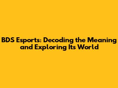BDS Esports: Meaning, History, And Impact