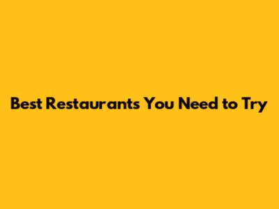 Best Restaurants You Need To Try