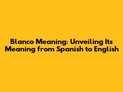 Blanco: Unveiling Its Meaning From Spanish To English