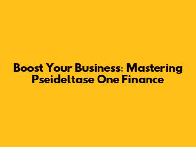 Boost Your Business: Mastering Pseideltase One Finance