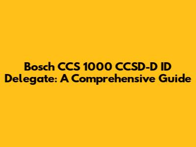 Bosch CCS 1000 CCSD-D ID Delegate: A Comprehensive Guide