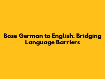 Bose German To English: Bridging Language Barriers