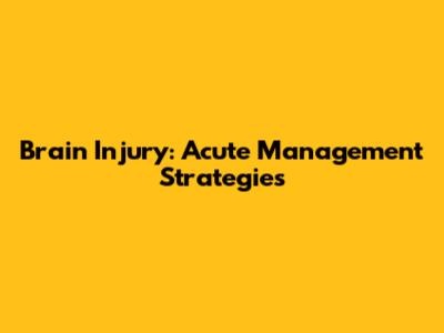 Brain Injury: Acute Management Strategies