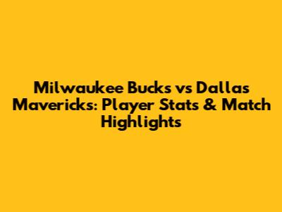 Bucks Vs Mavericks: Player Stats & Match Highlights