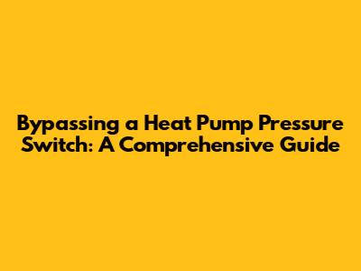 Bypassing A Heat Pump Pressure Switch: A Detailed Guide