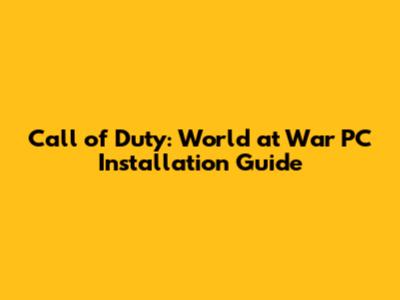 Call Of Duty World At War PC Installation Guide