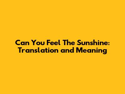Hey guys! Have you ever heard the catchy tune "Can You Feel the Sunshine"? It's one of those songs that just sticks in your head and makes you feel all warm and fuzzy inside. But have you ever stopped to think about what the lyrics actually mean, especially if you're not a native English speaker? Well, today we're diving deep into the world of "Can You Feel the Sunshine," exploring its translation, meaning, and why it's such a beloved song. So, buckle up and let's get started!