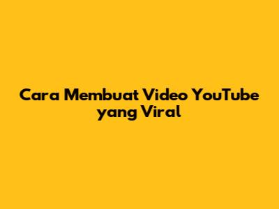 Cara Membuat Video YouTube Yang Viral