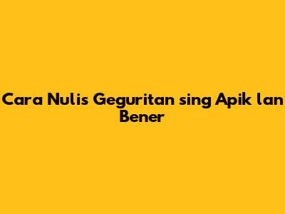 Cara Nulis Geguritan Sing Apik Lan Bener