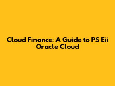 Cloud Finance: A Guide To PS Eii Oracle Cloud