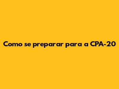 Como Se Preparar Para A CPA-20