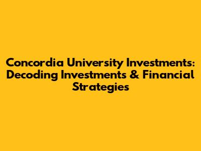 Hey there, finance enthusiasts! Ever wondered about where the big bucks are parked? Well, today, we're diving deep into the world of Concordia University investments. We'll explore the ins and outs of how this prestigious institution manages its finances. From endowment funds to real estate, we'll uncover the secrets behind Concordia's financial strategies. So, buckle up, because we're about to embark on an exciting journey into the financial realm of this university. Let's get started, guys!